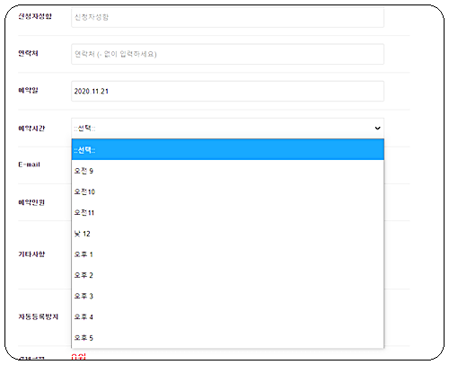 예약상품-신청자-예약인-예약시간-이메일 그리고 인우너 선택후 지정